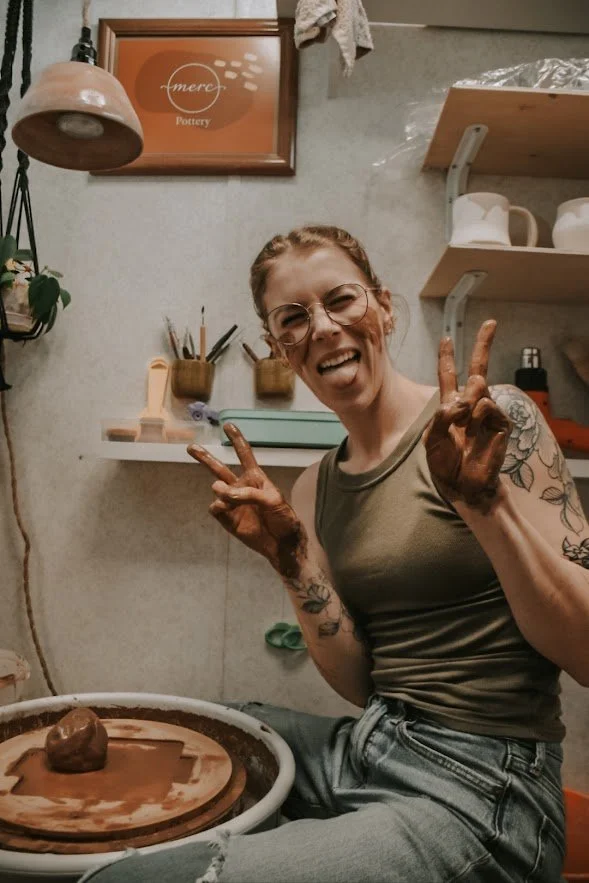 Oh hi, I’m Meranda — the hands and heart behind merc pottery. I’m a wife, a mom of two wonderful boys, and a lifelong maker who finds peace and purpose in working with clay.